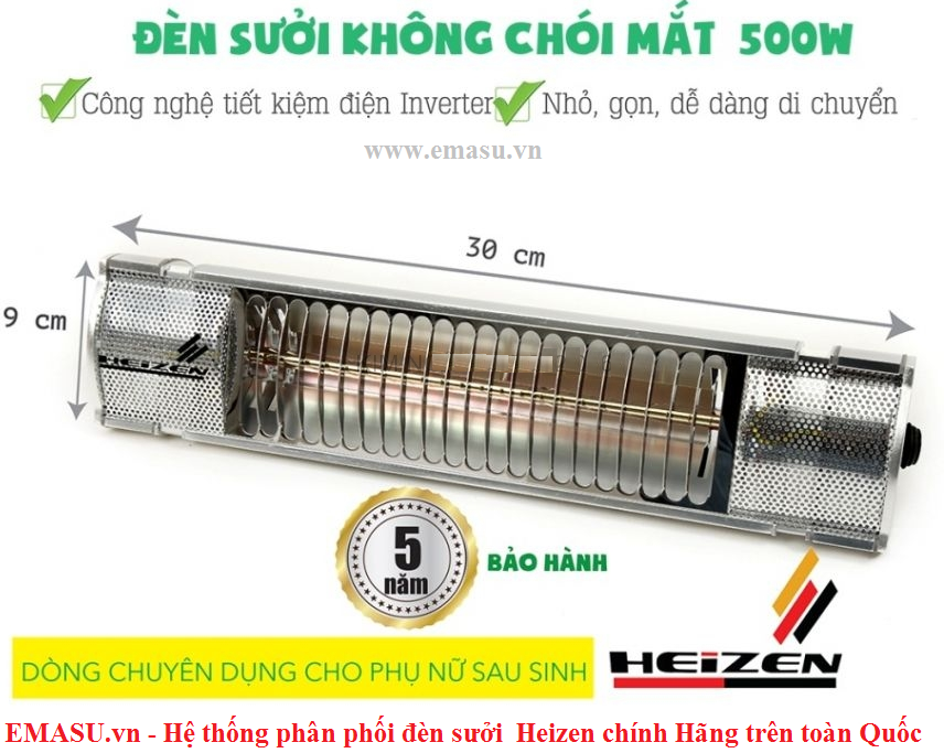 + Đèn sưởi Heizen 500W sưởi ấm tức thì, không đốt cháy oxy, không gây khô da rất tốt cho sức khỏe