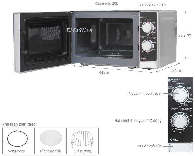 Công suất: Nướng (1000W); Vi sóng (800W)
