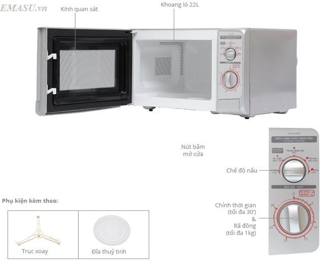 Mô tả lò vi sóng cơ Sharp R-21A1(S)VN